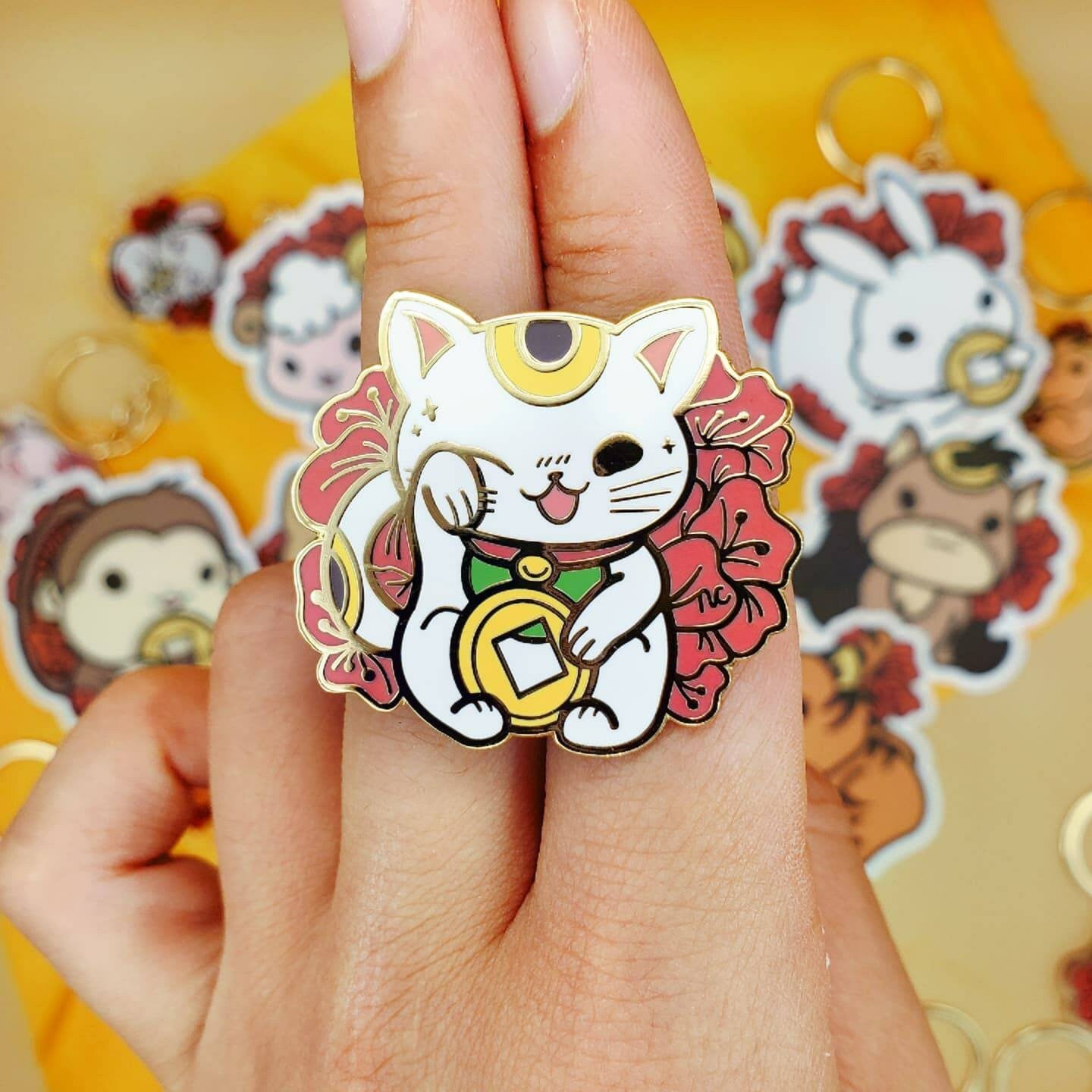 Lucky Plum Blossom Zodiac Animals Hard Enamel Pins, Keychains, Vinyl Stickers