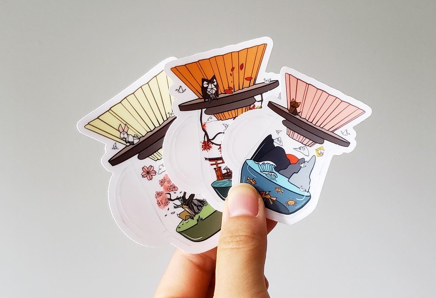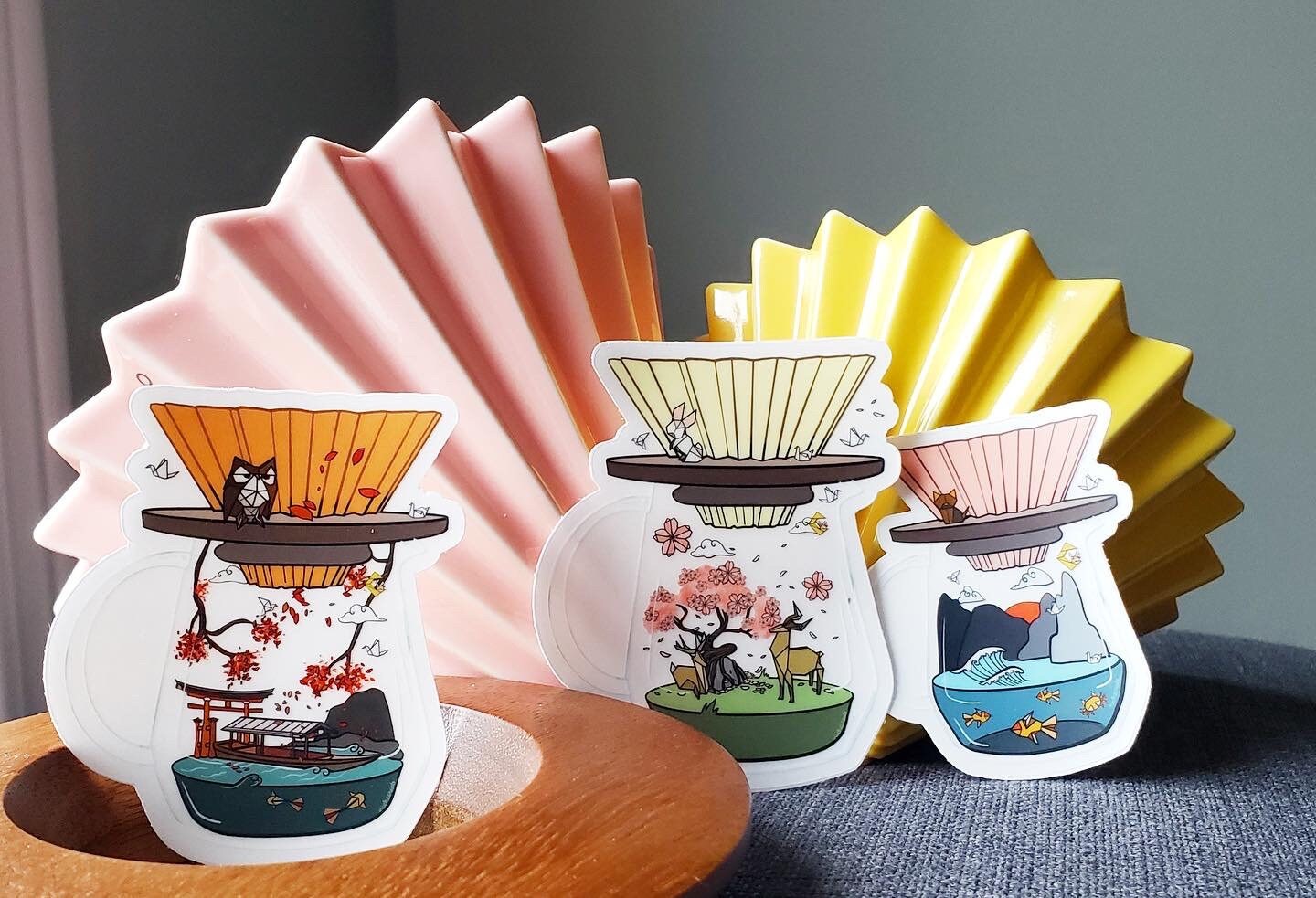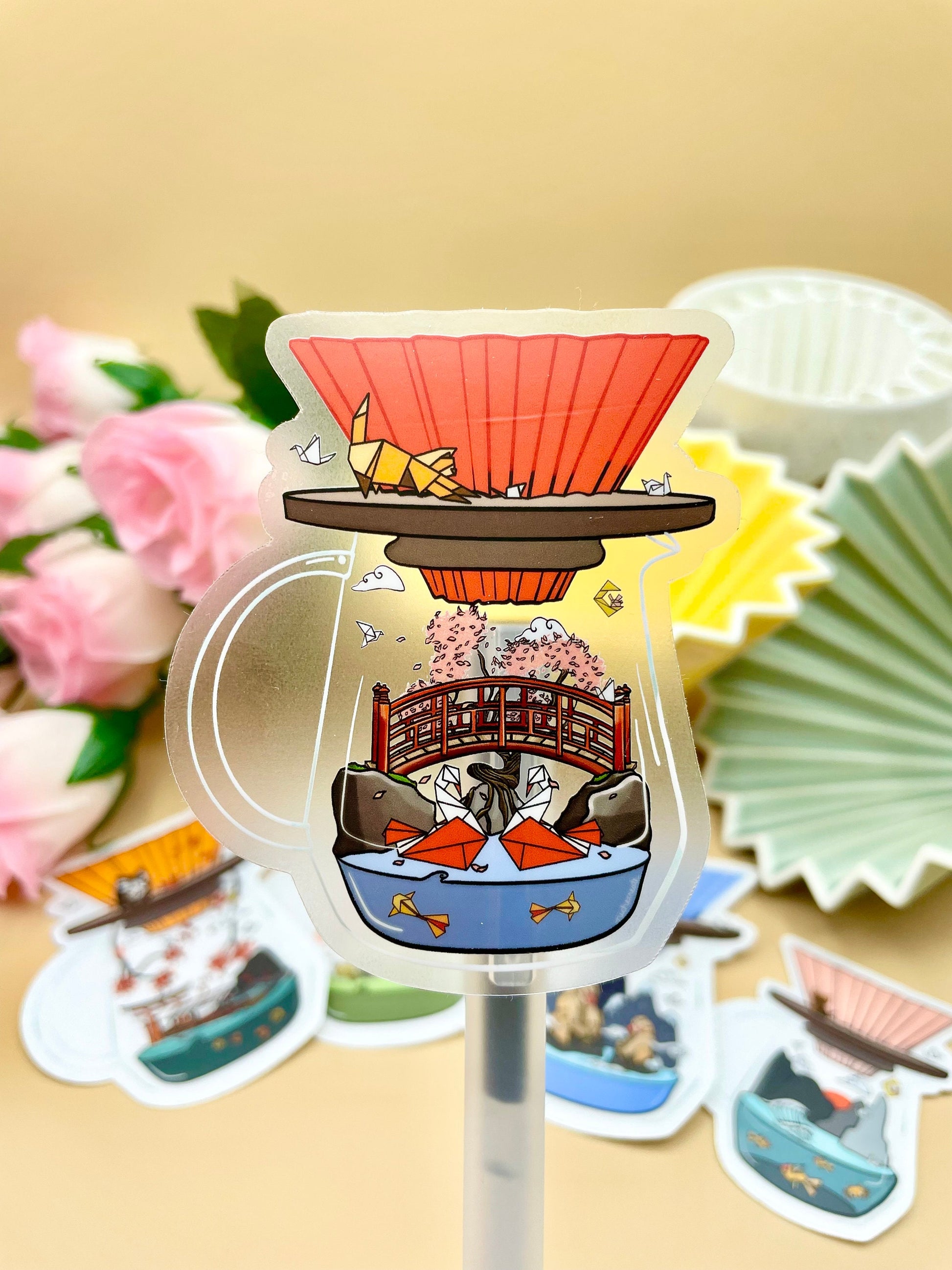 Origami Coffee Vinyl Stickers (Transparent) | Red/Pink/Yellow/Orange/Blue