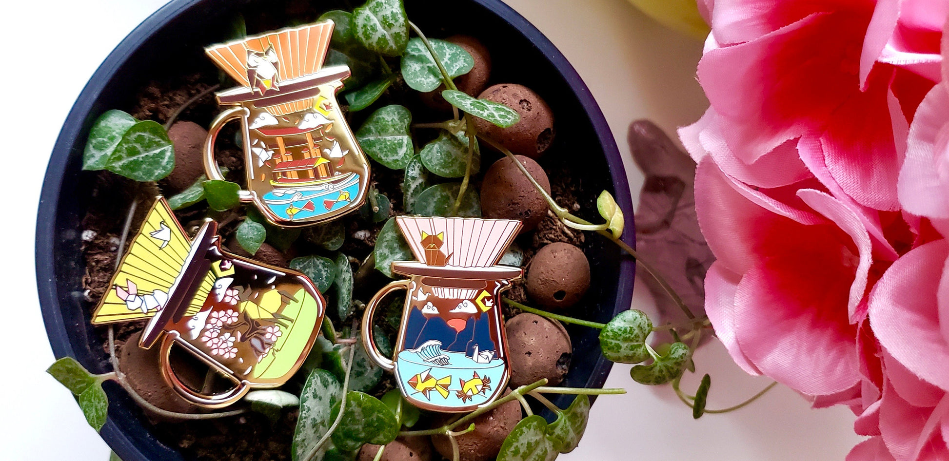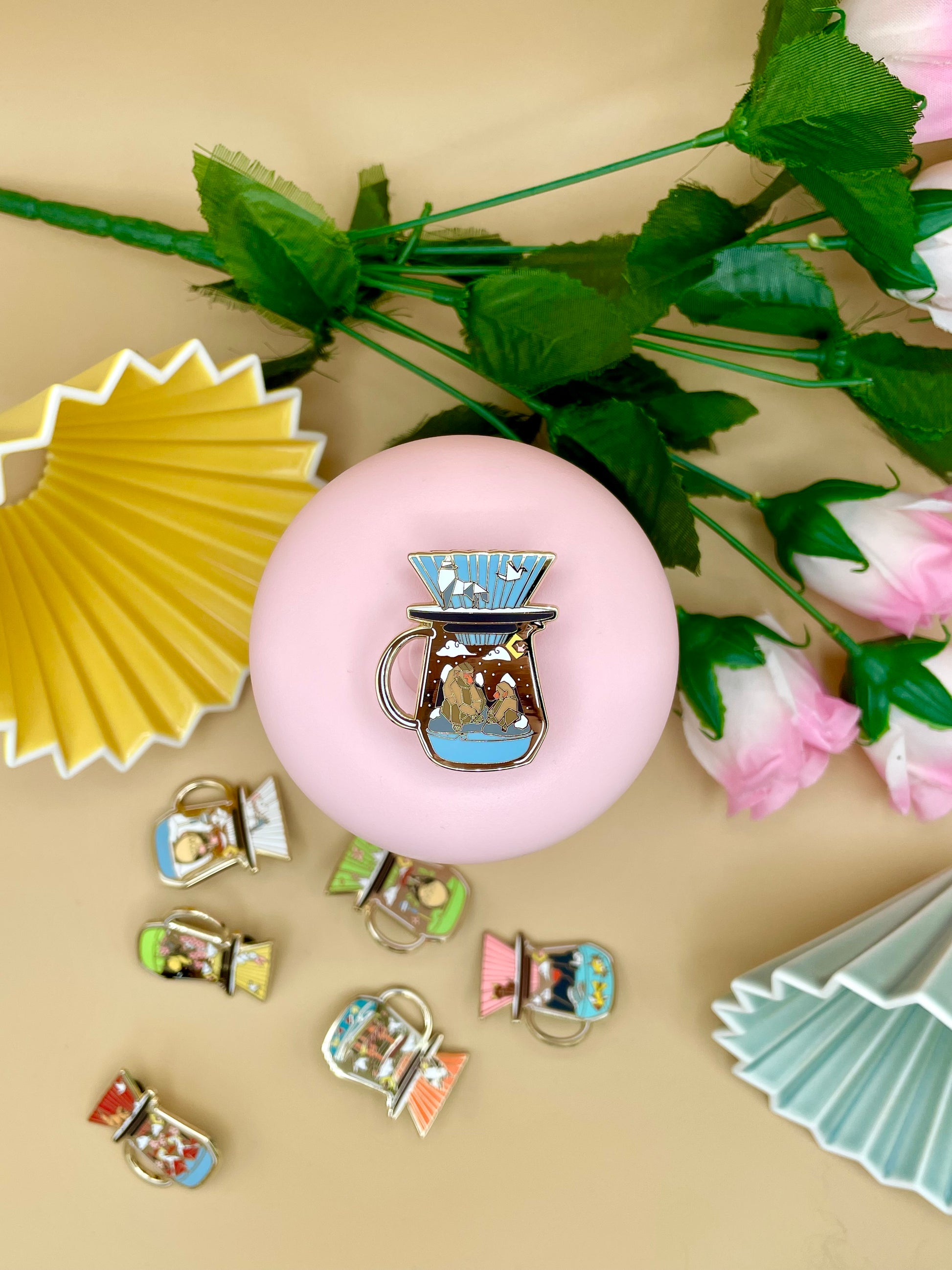 Origami Coffee Gold Hard Enamel Pins (Pink/Yellow/Orange/Blue/Red)
