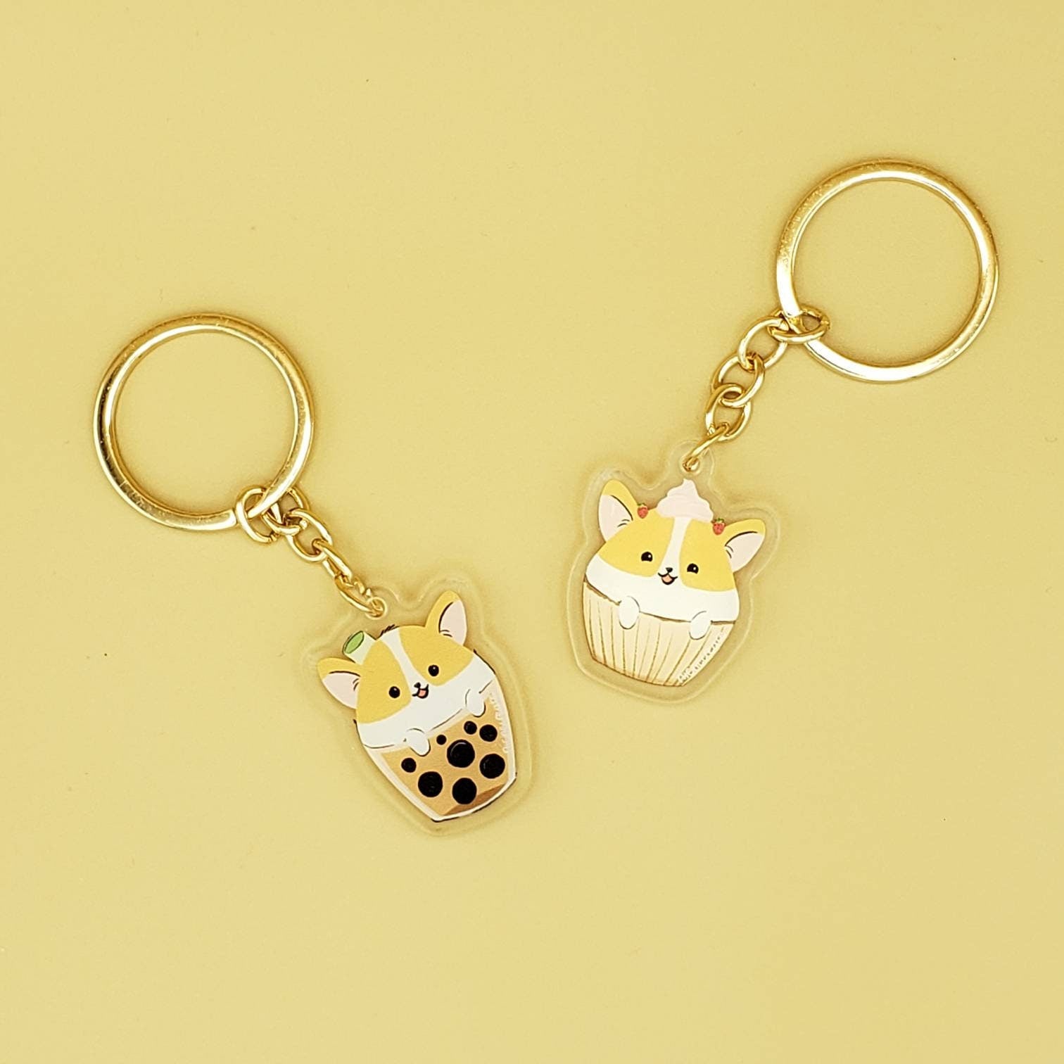 Corgi Keychains | Bubble Tea and Cupcake