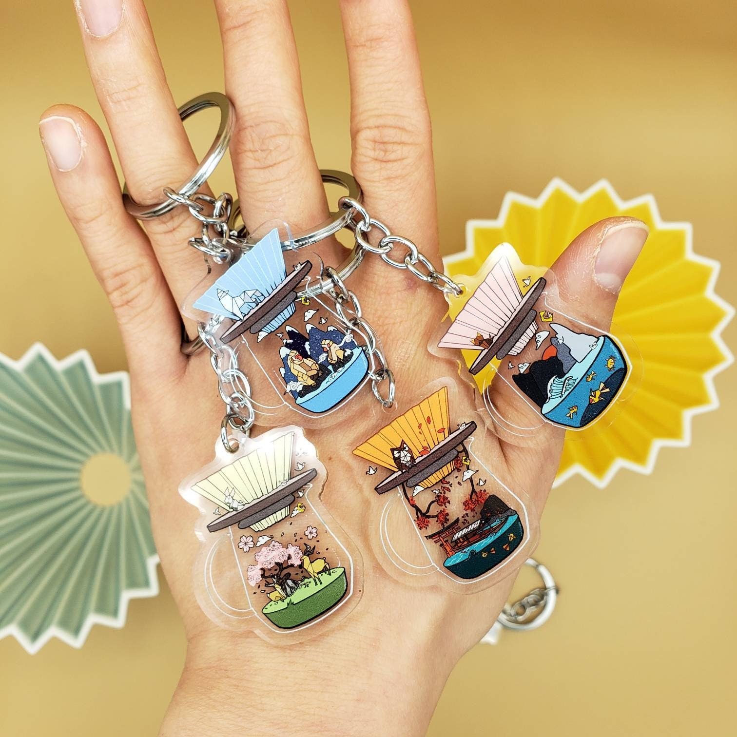 Origami Coffee Dripper Keychains | Yellow, Pink, Orange, Red, Blue, Orange, White, Green (Inspired Art)