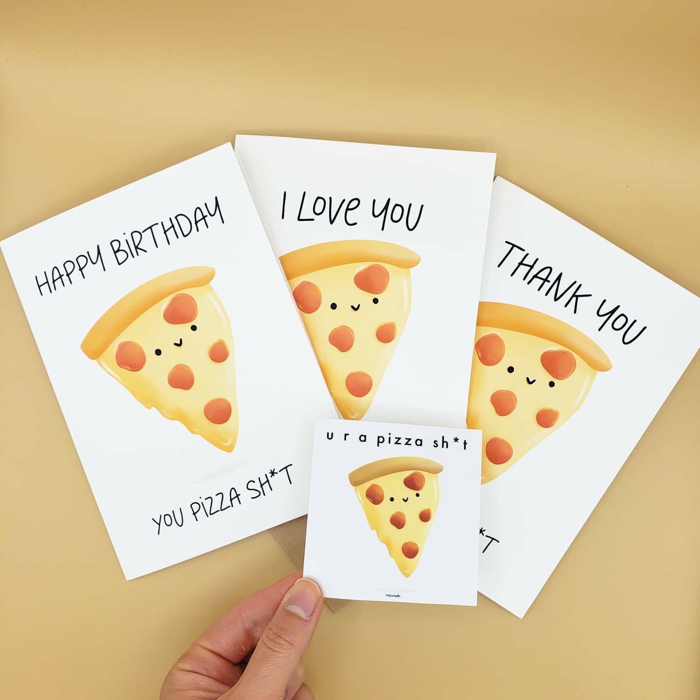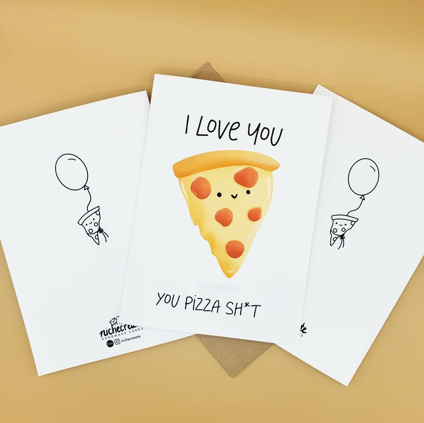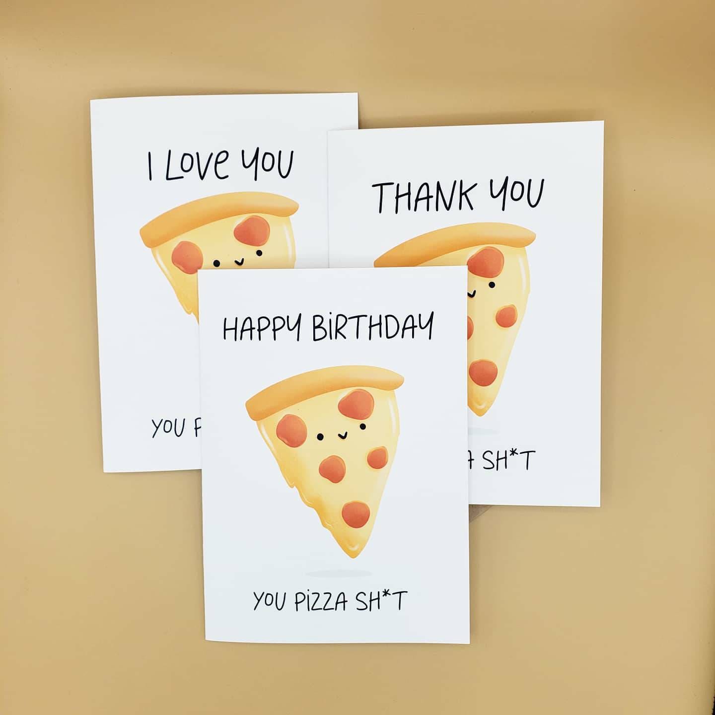 Pizza Sh*t Card + Pizza Vinyl Sticker | Customizable | Birthday Card / Anniversary Card / I Love You Card / Thank You Card