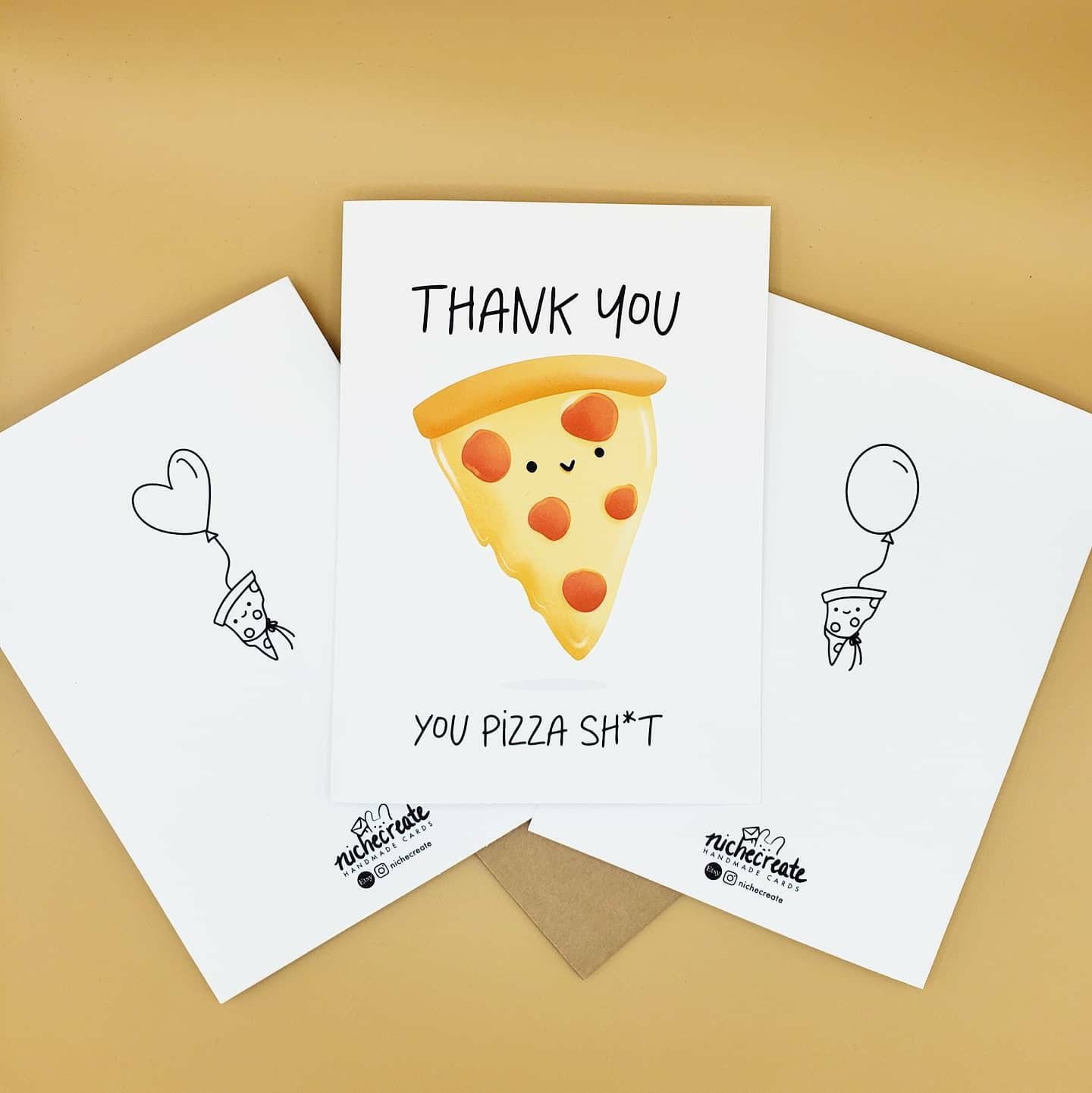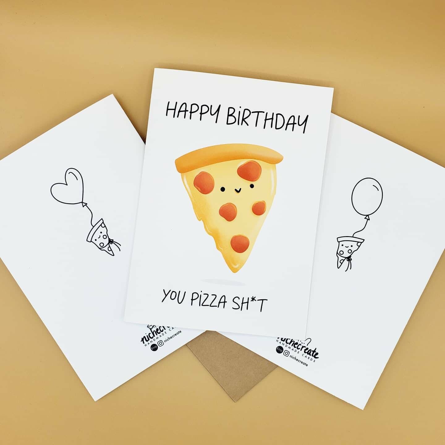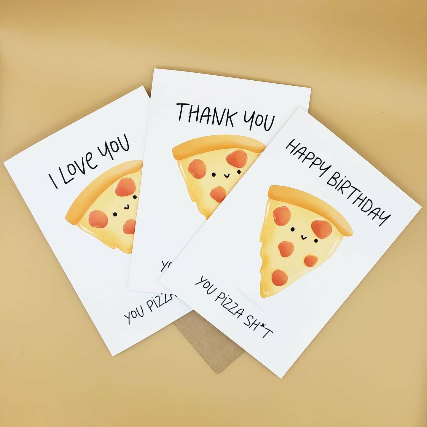 Pizza Sh*t Card + Pizza Vinyl Sticker | Customizable | Birthday Card / Anniversary Card / I Love You Card / Thank You Card