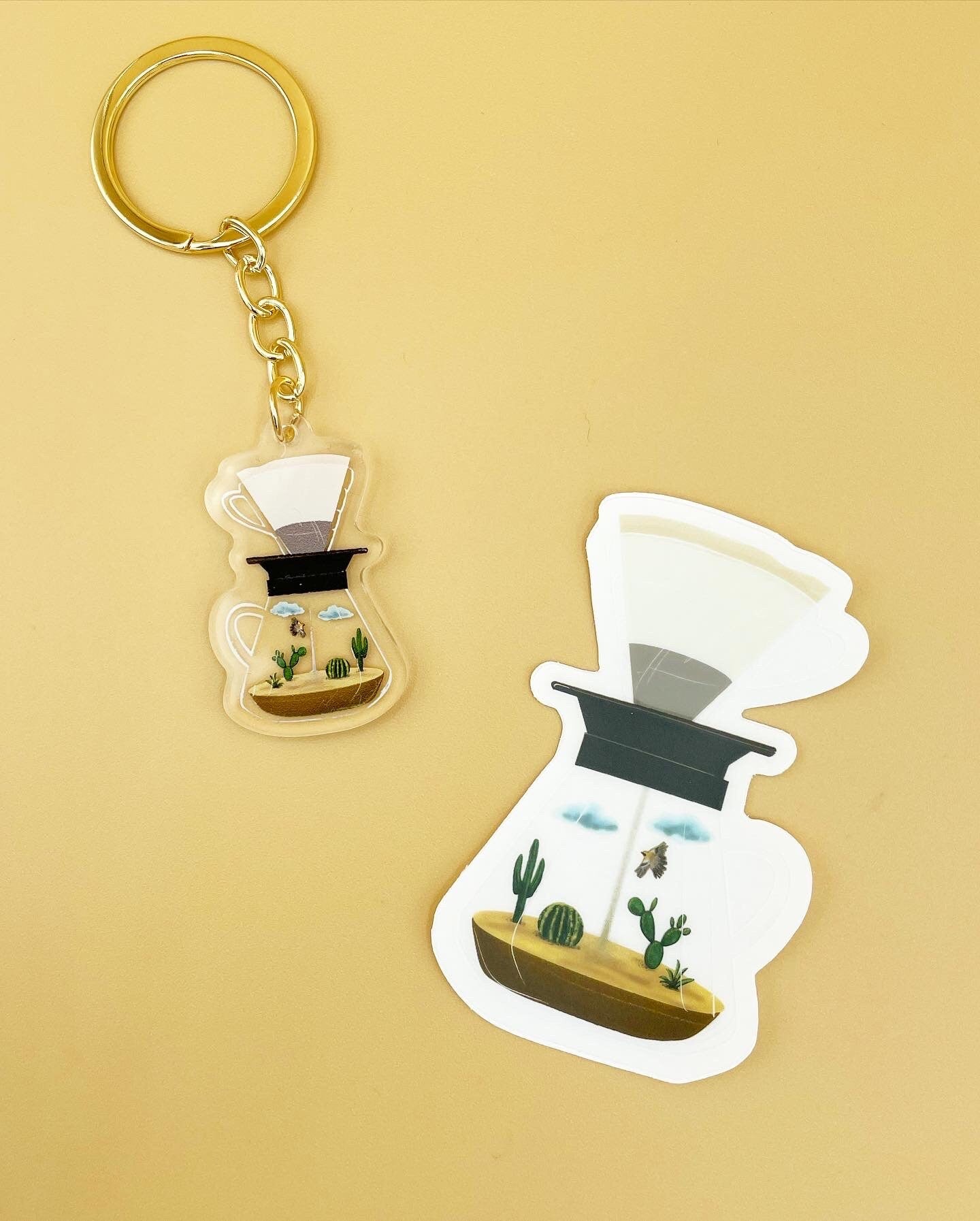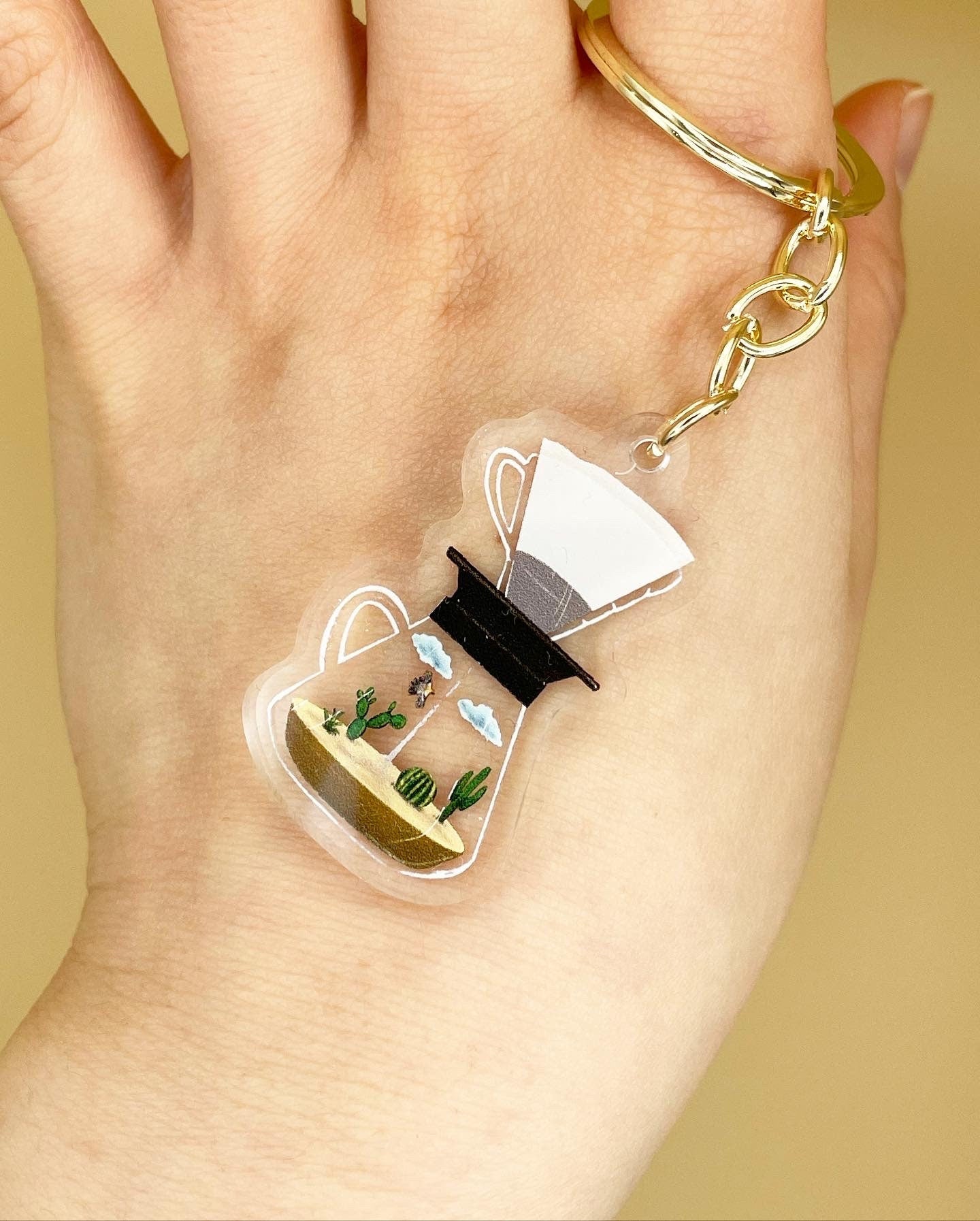 V60 Desert Coffee Keychain | Specialty Coffee Dripper Charm, Gifts for Baristas
